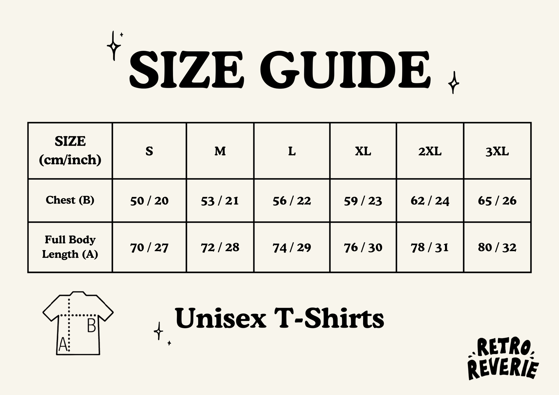 - Sizing choice of Fitted Tee, or a Unisex Baggy style