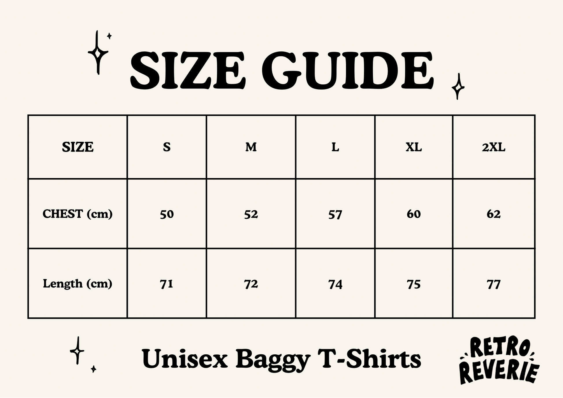 - Sizing choice of Fitted Tee, or a Unisex Baggy style