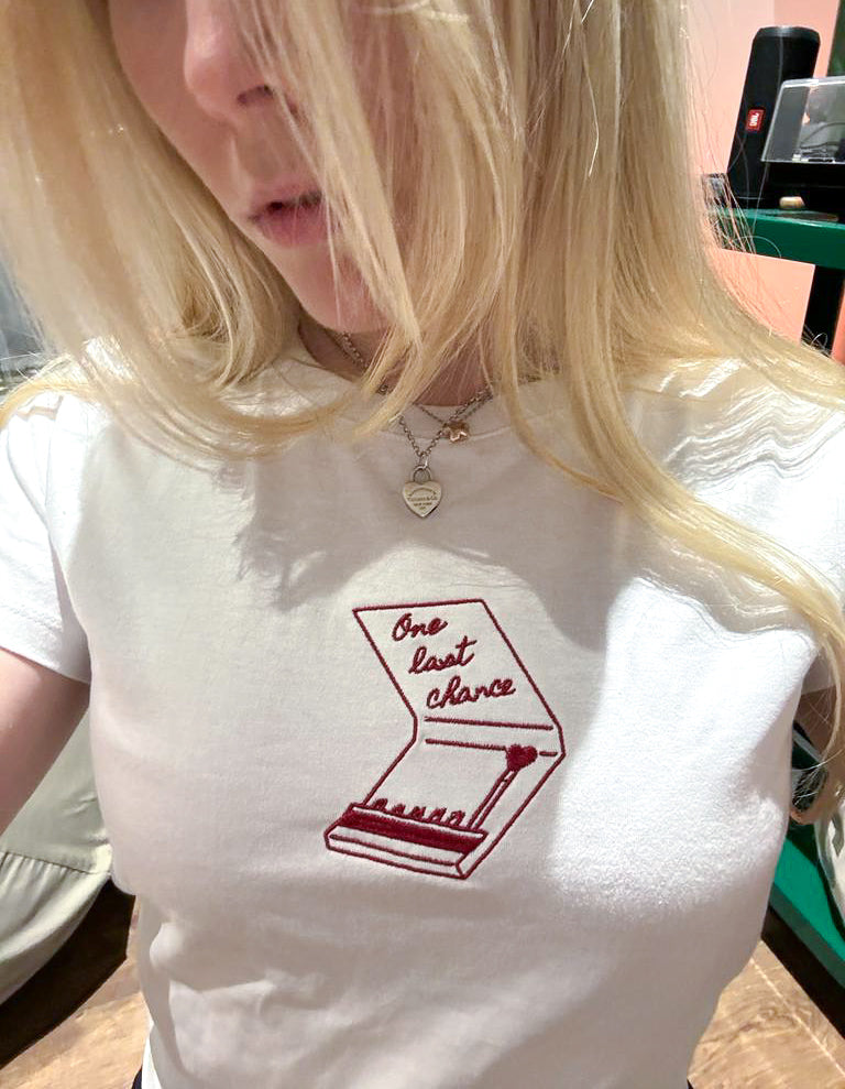 Ask for custom colours of design - please specify below whether you would like a Women's Fitted Tee or Unisex, Baggy Fit T-Shirt. Model wears a White Fitted Women's Tee in Size Small