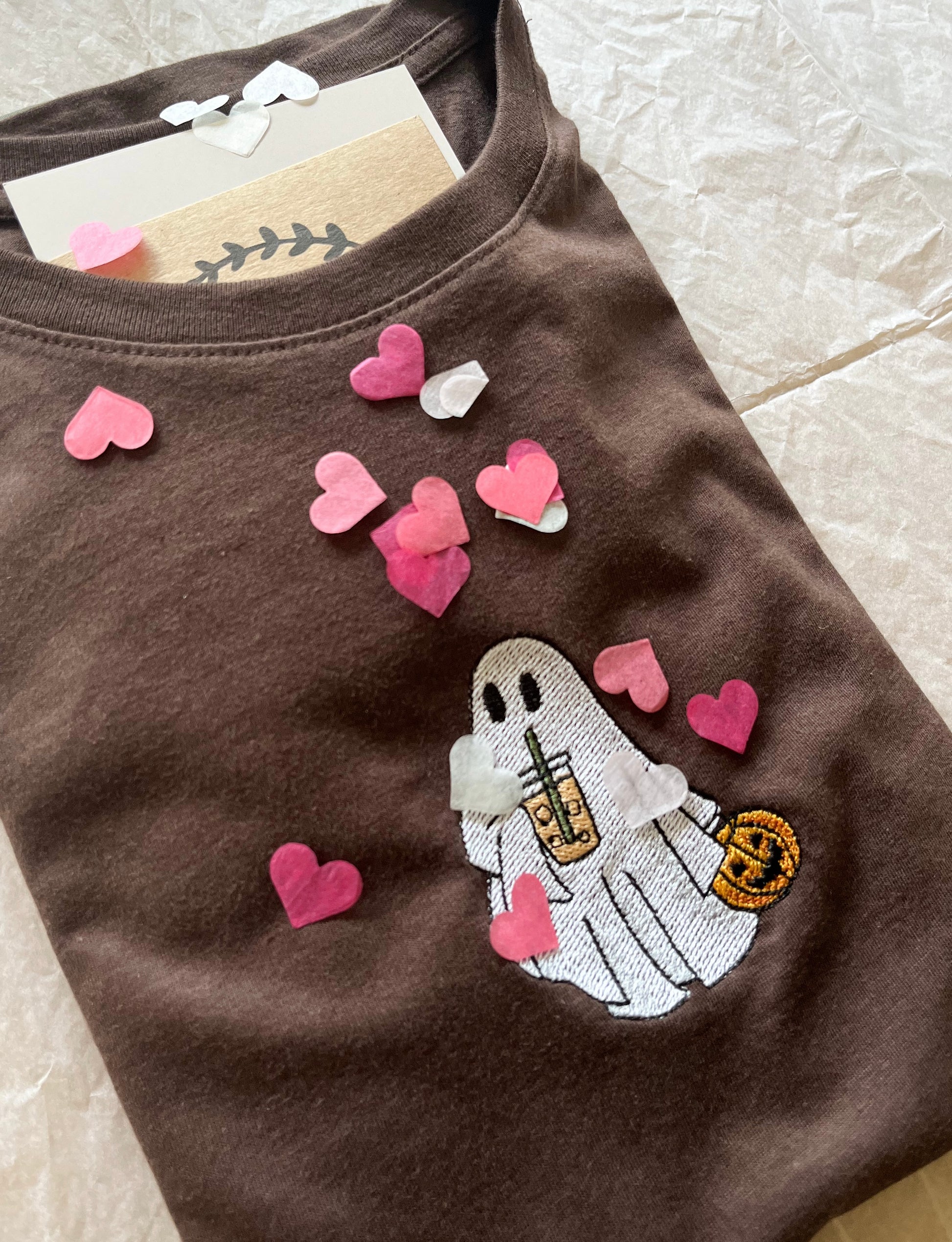 Pumpkin Ghost Embroidered T-Shirt 👻🧋