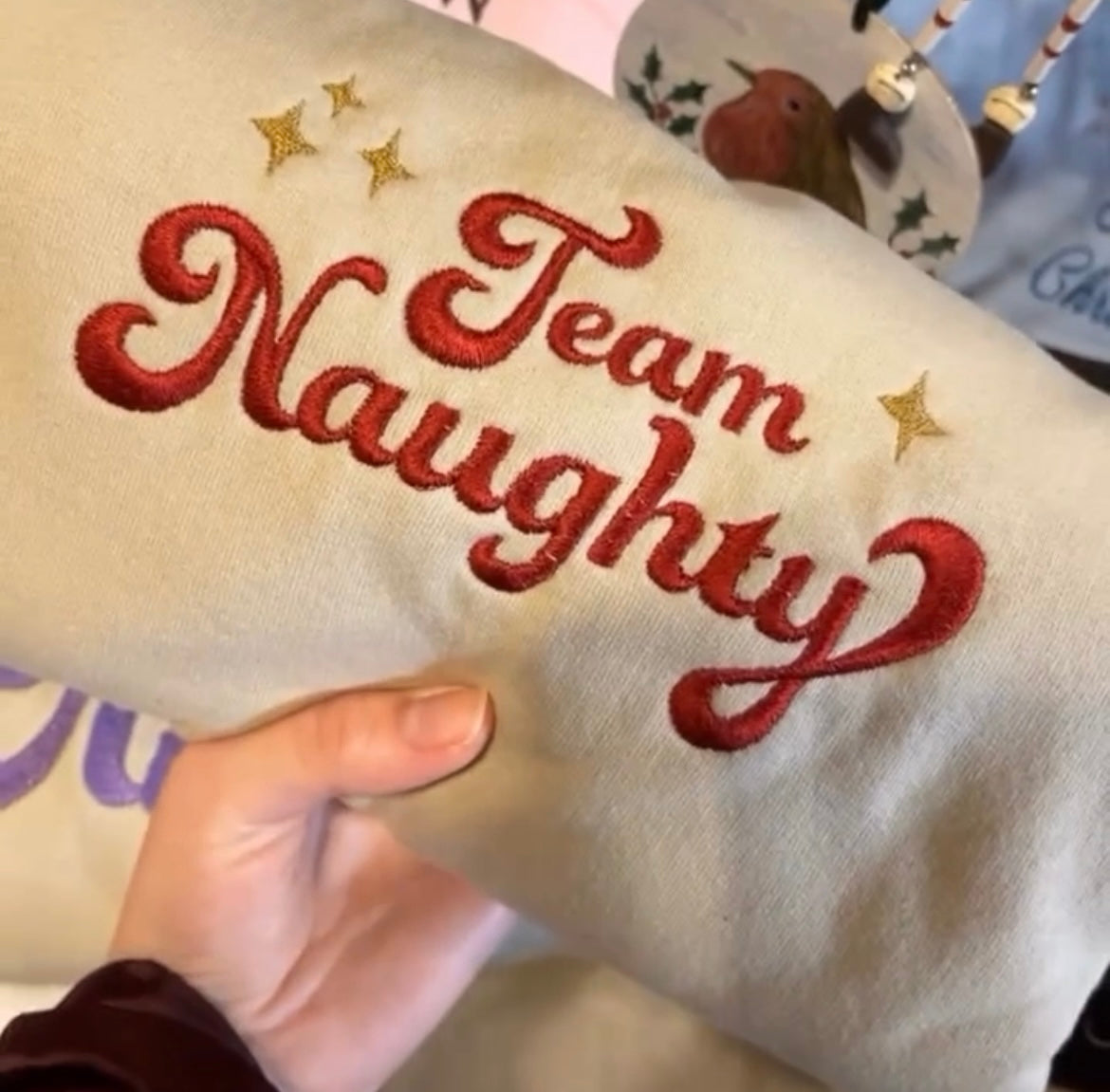 Team Naughty Embroidered Sweater ๐โจ